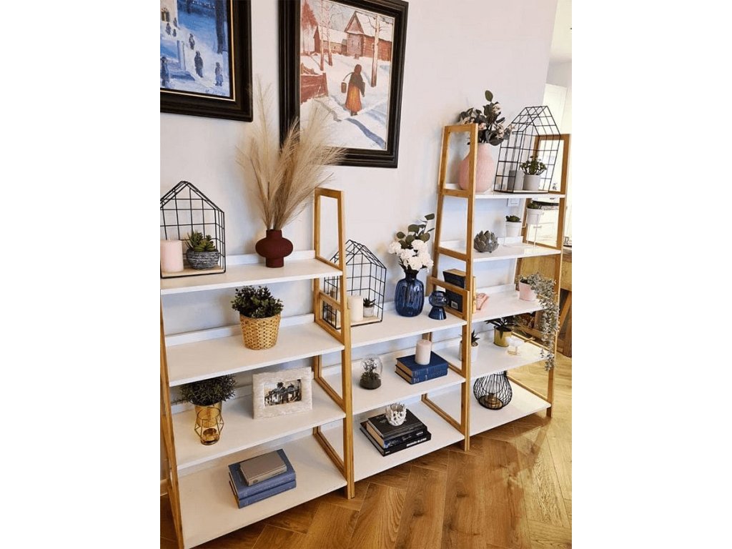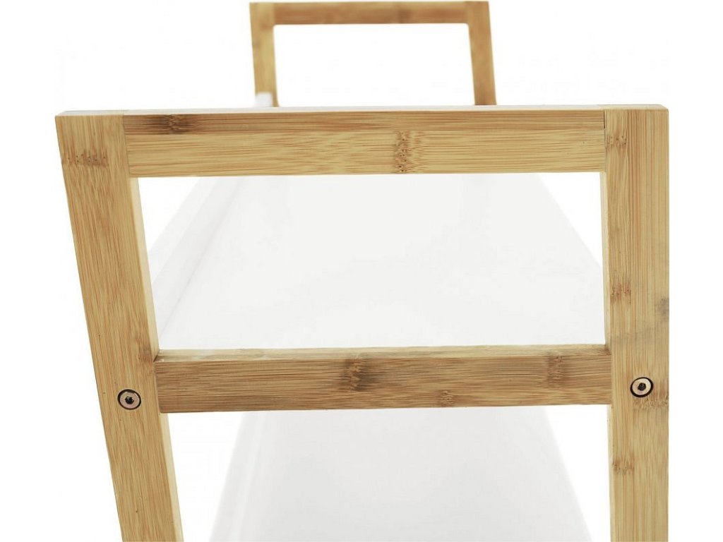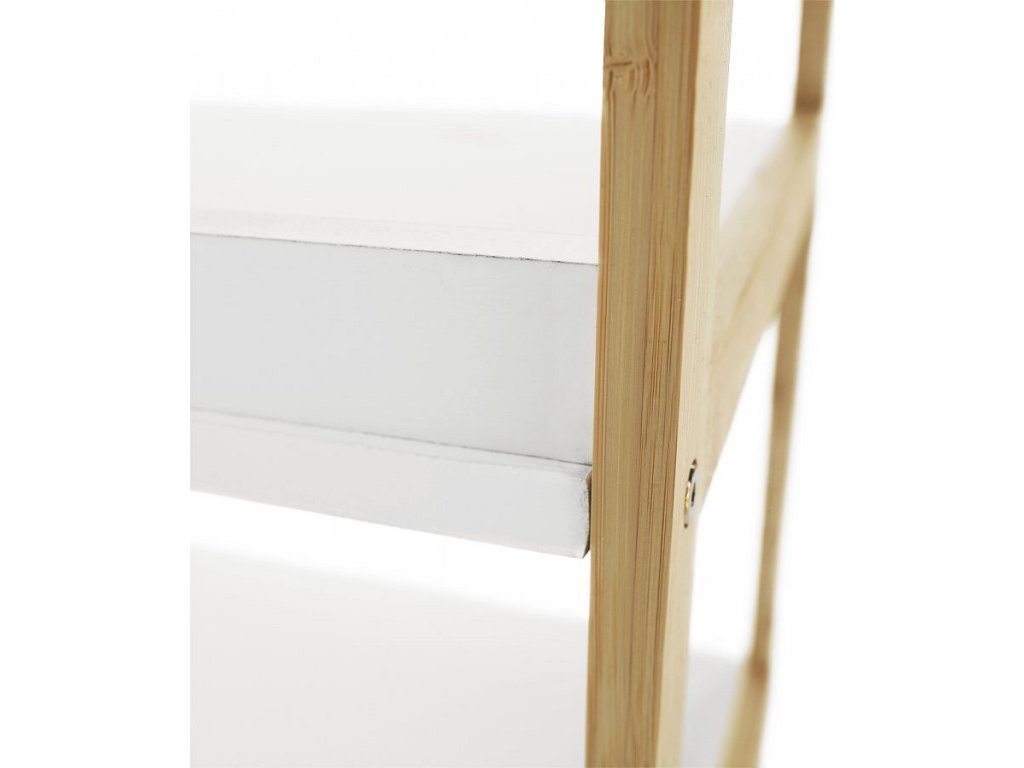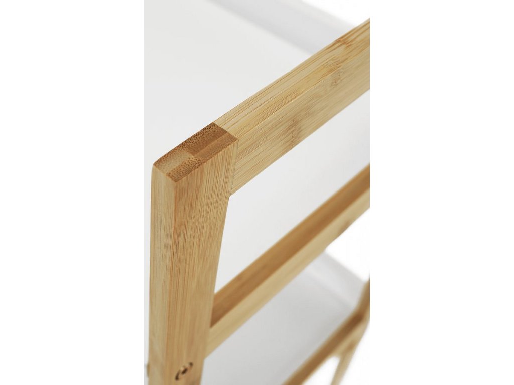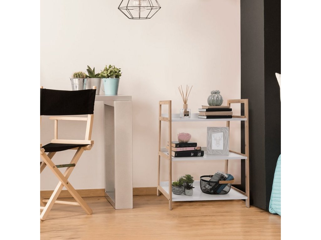 Víceúčelový regál Koen TYP 1 Materiál: MDF / bambus lakovaný Barva: bílá / přírodní Rozměry (ŠxHxV): 63x36x77,5 cm Tloušťka materiálu stojan: 1,4 cm Tloušťka materiálu police: 1,6 cm Nosnost na jednu polici: 5 kg 3 police Hloubka vrchní police: 27,4 cm Hloubka střední police: 30,3 cm Hloubka spodní police: 33,2 cm Prostor mezi vrchní a střední policí: 26,2 cm Prostor mezi střední a spodní policí: 27 cm moderní design praktický Dodávané v demontu.