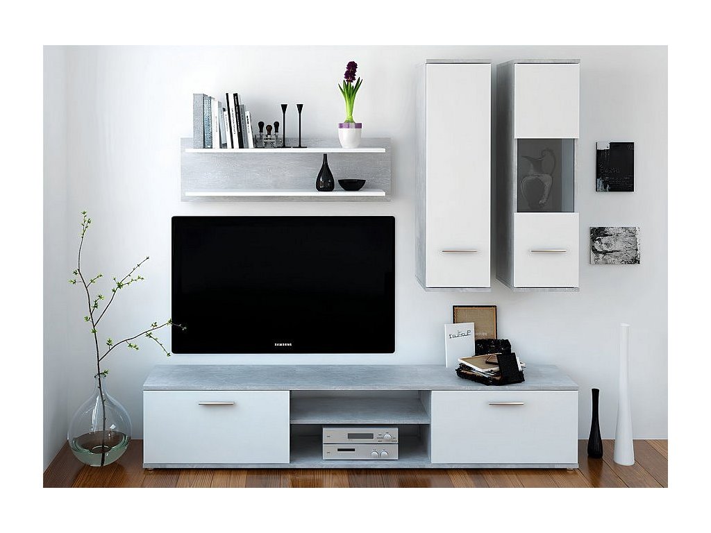 Obývací stěna, beton / bílá, WAW