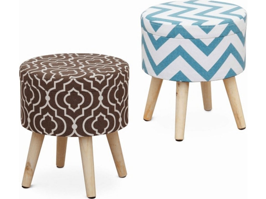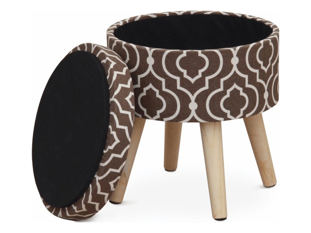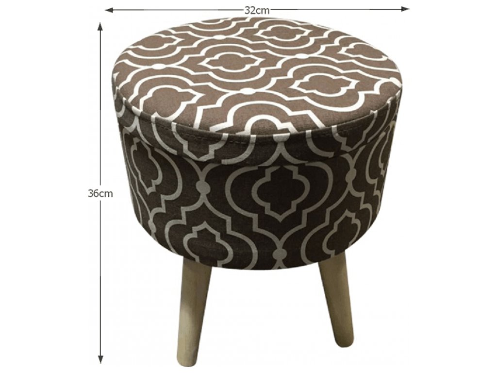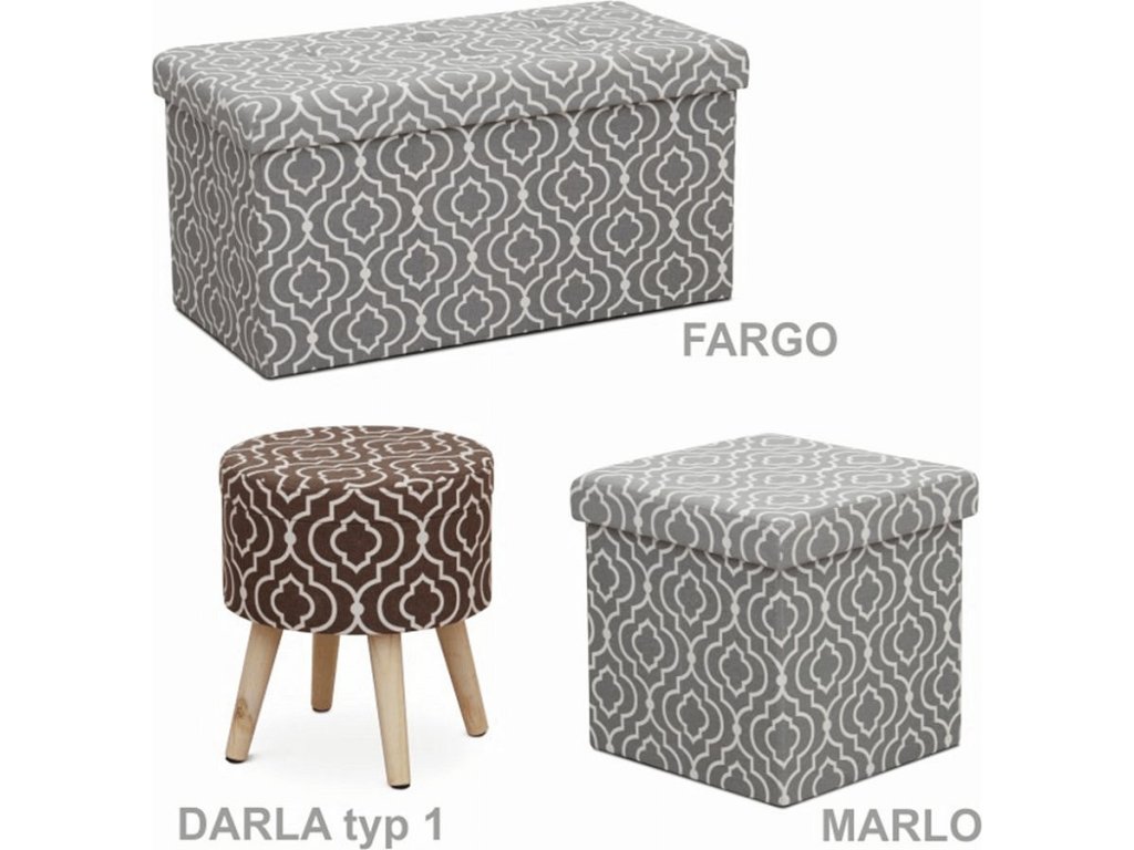 Taburet DARLA TYP 2 s úložným prostorem hnědo/bílý vzor. Oděruodolnost textilie podle testu Martindale: 90 000 oděrek Rozměry (ŠxHxV): 32x32x36 cm Nosnost: 100 kg