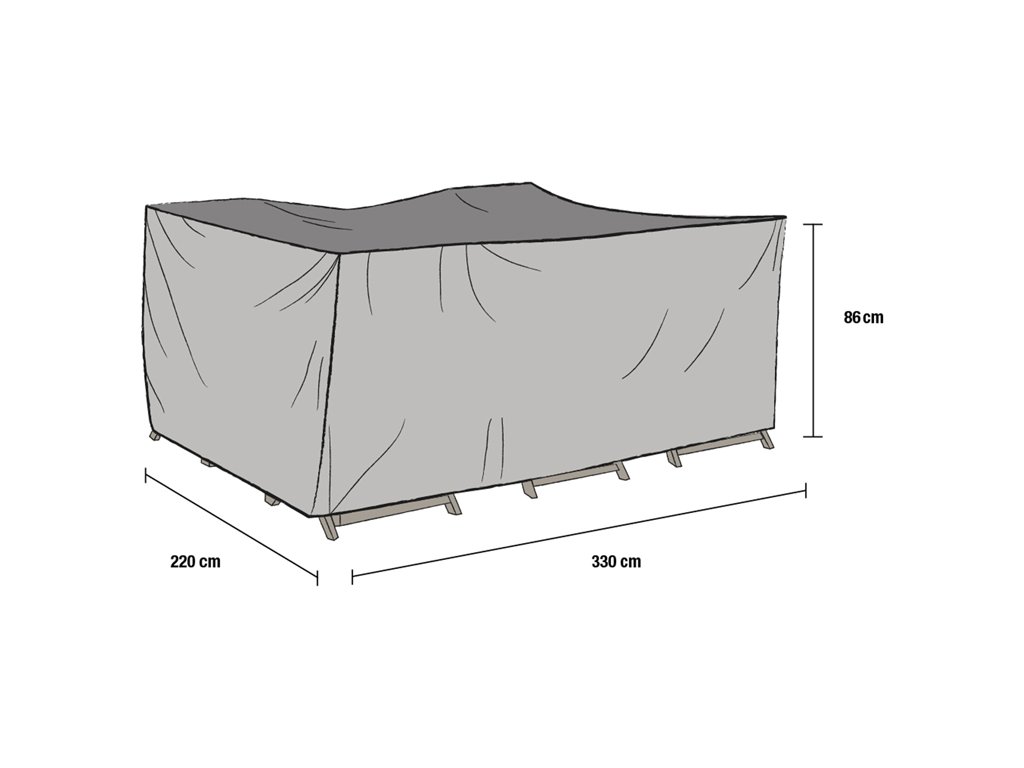 Exterierová ochranná plachta pre nábytok. Použitím našich ochranných obalov predĺžite vášmu nábytku životnosť a ochránite ho pred nepriaznivým počasím.Materiál: vode odolný 100% polyesterRozmery: 330 x 220 x 65 cmFarba: šedáHmotnosť: 3 kg