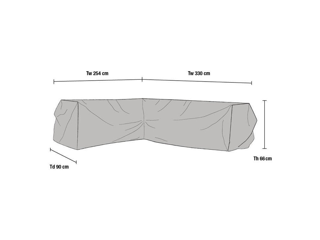 Exterierová ochranná plachta pre rohové sedacie súpravy. Použitím našich ochranných obalov predĺžite vášmu nábytku životnosť a ochránite ho pred nepriaznivým počasím.Materiál: vode odolný 100% polyesterFarba: šedáRozmery:254 x 254 x 90 cm Š/H/V254 x 330 x 90 cm Š/H/VVýška: 66 cmHmotnosť: 2 kg