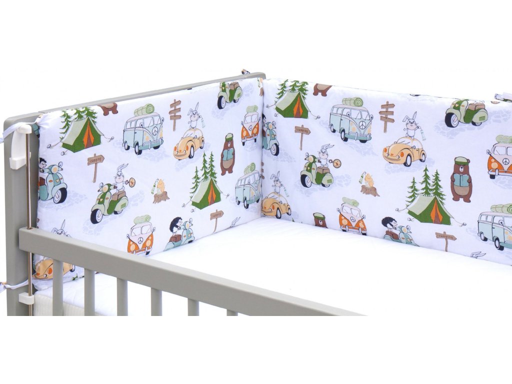 Ochranný límec (mantinel) okolo postýlky pro bezpečnější pohyb dítěte. Límec je do 1/2 postýlky 120 x 60 cm, výška 30 cm. Přivazuje se k tyčkám. Pokud by Vám nestačil límec do půlky postýlky, lze si dát dva proti sobě a mít tak ochranu po celé postýlce.