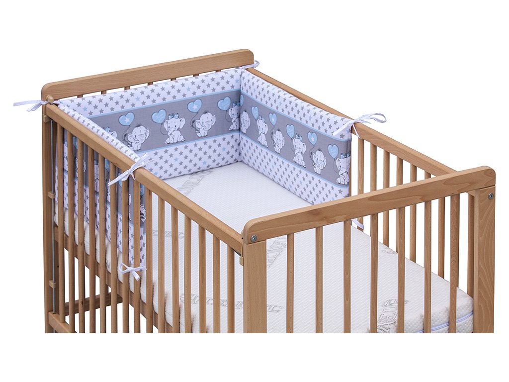 Ochranný límec (mantinel) okolo postýlky pro bezpečnější pohyb dítěte. Límec je do 1/2 postýlky 120x 60 cm, výška 30 cm. Přivazuje se k tyčkám. Pokud by Vám nestačil límec do půlky postýlky, lze si dát dva proti sobě a mít tak ochranu po celé postýlce.