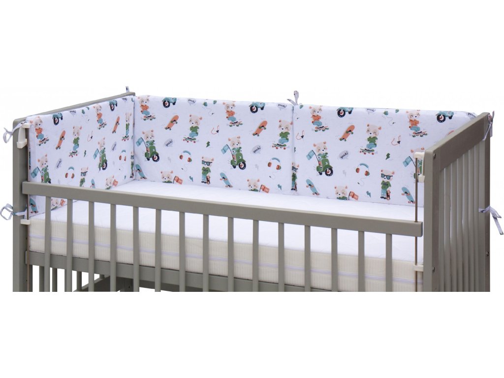 Ochranný límec (mantinel) okolo postýlky pro bezpečnější pohyb dítěte. Límec je do 1/2 postýlky 120 x 60 cm, výška 30 cm. Přivazuje se k tyčkám. Pokud by Vám nestačil límec do půlky postýlky, lze si dát dva proti sobě a mít tak ochranu po celé postýlce.