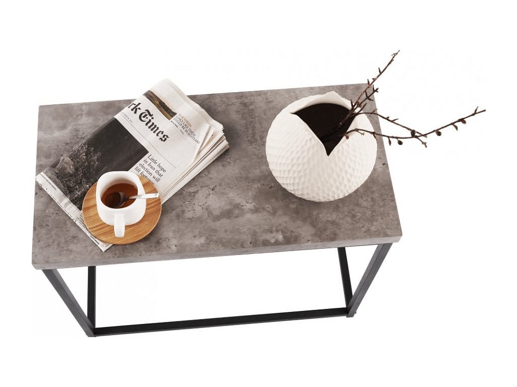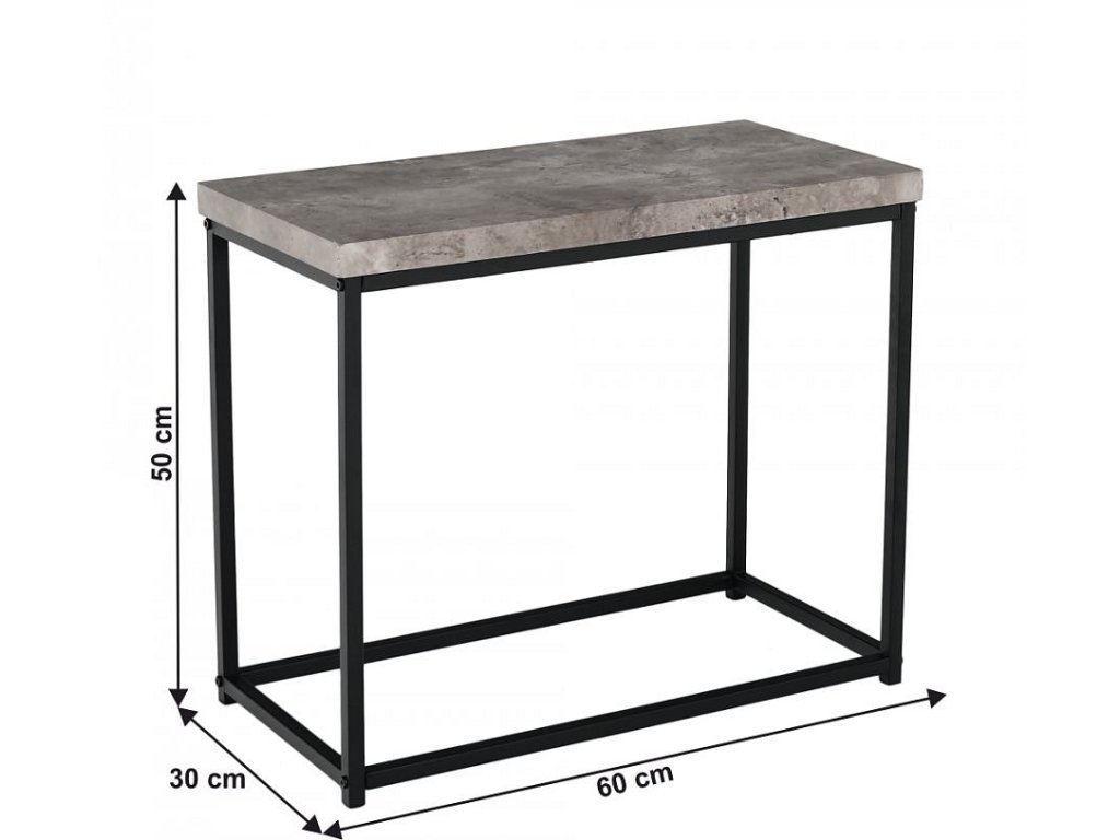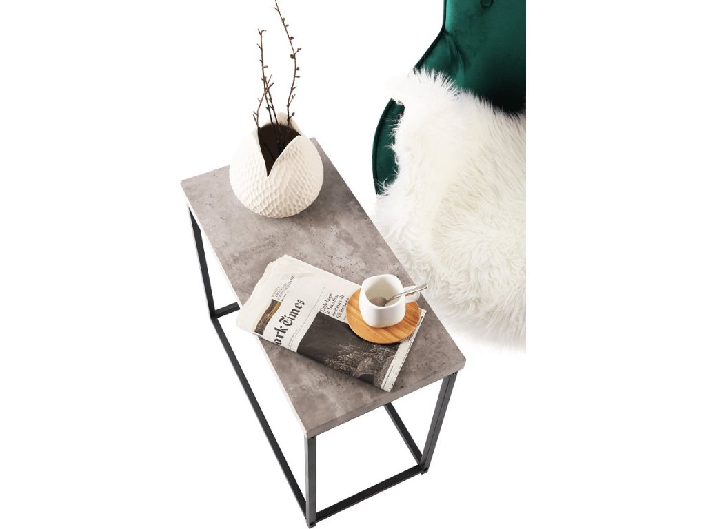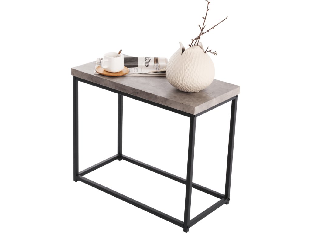 Příručný stolík TENDER Materiál: ocel / dřevo Barva: čierna / beton Rozměr (šxvxv): 60x30x50 cm Tloušťka materálu: 30 mm Dodávané v Demonte