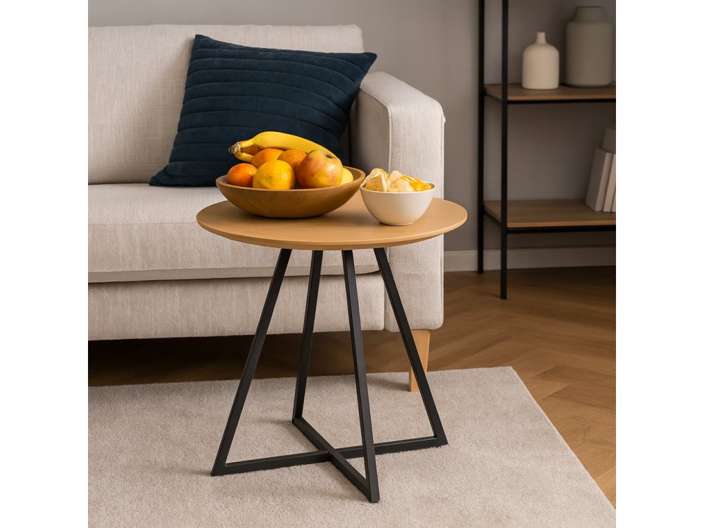 Materiál: MDF / kov Barva: dub / černá Rozměry (ŠxHxV): 50x50x45 cm Nosnost: 5 kg designový industriální styl Dodávané v demontu.