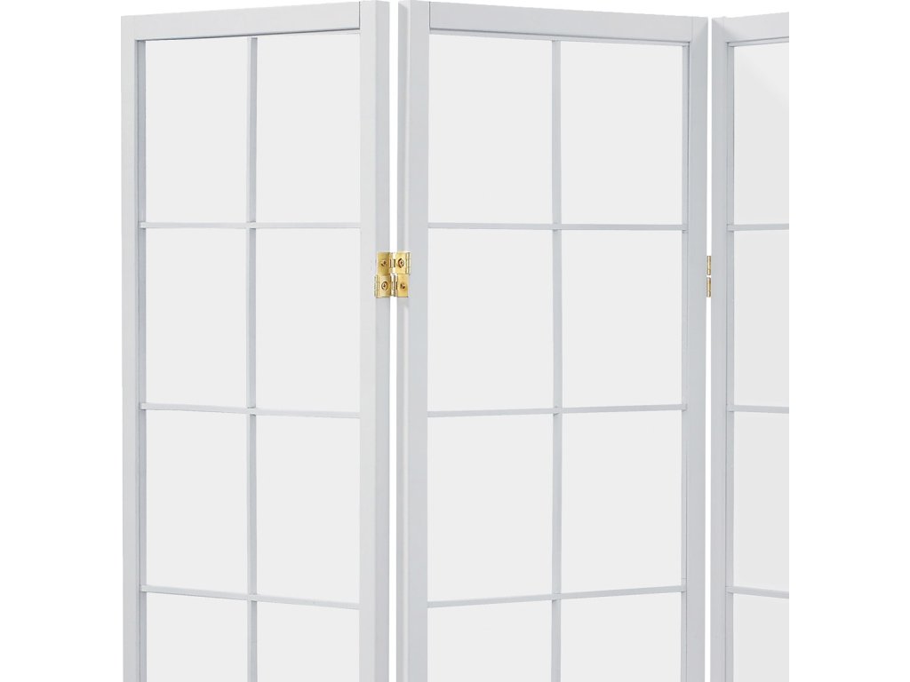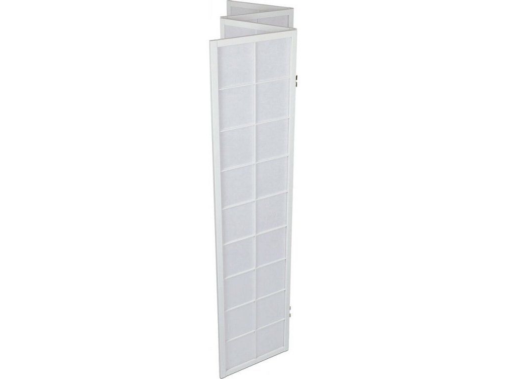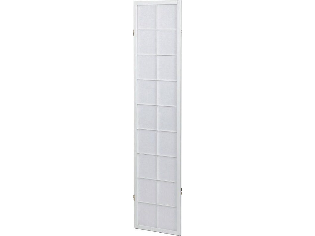 4dílný volně stojící paraván s konstrukcí z masivního smrkového dřeva v bílé barvě a výplní z bílé netkané textilie. Plní nejen funkci okrasnou, ale také praktickou. Lze jej použít jako zástěnu nebo diskrétní i optickou dělící příčku nejen v bytě, ale i v komerčních prostorách. Díky skládací konstrukci a celkové nízké hmotnosti jej lze bez problémů přemísťovat a manipulovat s ním. Kombinace dřeva a netkané textilie působí vzdušným dojmem, stylově lze paraván umístit do jakkoli zařízeného interiéru. V každém si najde zasloužené místo. Výška paravánu je 178 cm, šíře jednoho dílu 43,5 cm, celková plná šíře je 176 cm. Tloušťka stěny jsou 2 cm. Stěny paravánu jsou k sobě připevněny kovovými pomosazenými panty. Celková hmotnost je 6,5 kg.Doplňkové parametry