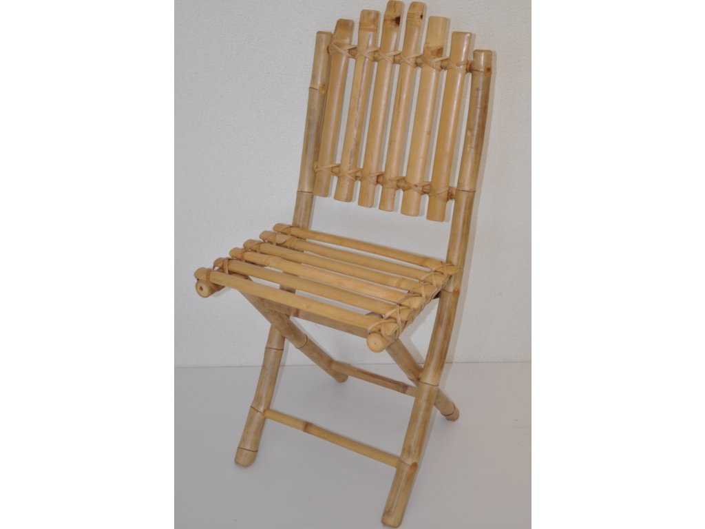 Židle vyrobená z přírodního bambusu. | Židle je skládací pro snadné uložení. Velikost židle je 42x48x96 cm. Výška sedu je 49 cm. Nosnost židle je 110 kg.