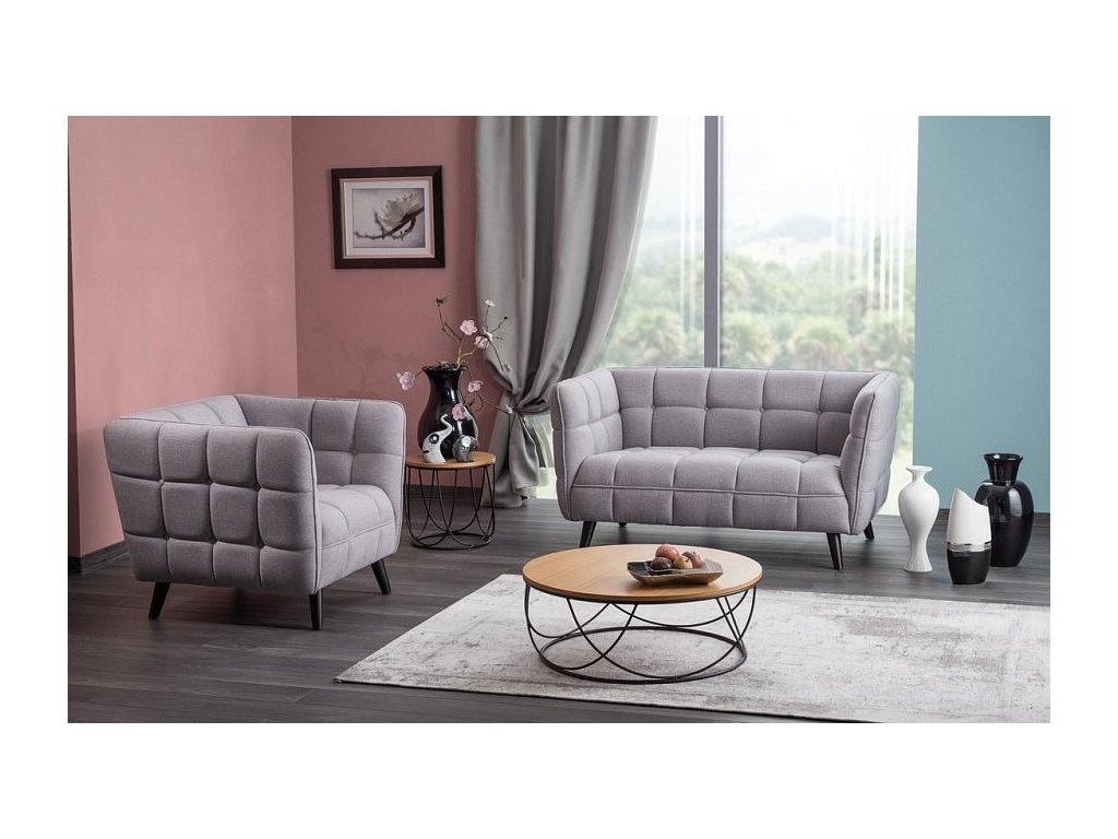 Čalouněné dvojkřeslo - pohovka v elegantním stylu bude ozdobou každého interiéru. Nožky jsou ze dřeva v barvě wenge, čalounění je z látky velvet ( Bluvel 14 ) v šedé barvě. Pohodlí a elegance ve Vašem obýváku, dětském pokoji či kanceláři.Doplňkové parametry