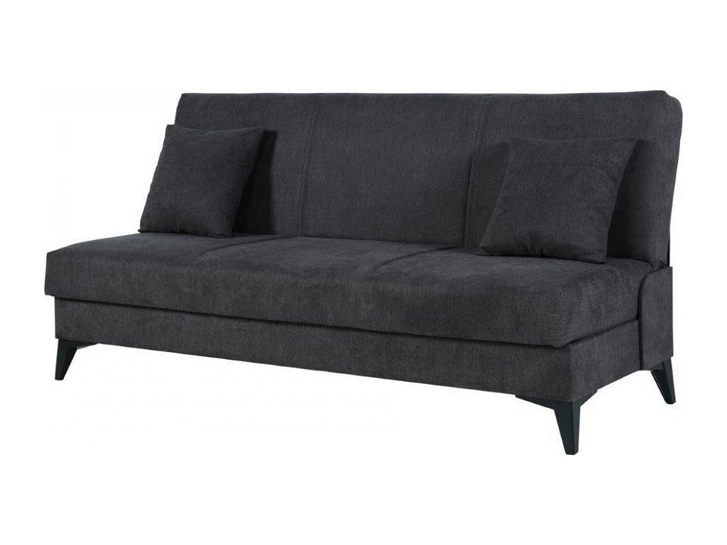 Tento model představuje velmi elegantní pohovku, kterou v případě potřeby můžete rozložit a využít pro příležitostné spaní nejen pro Vás, ale i vaše hosty. Dokonale se hodí do malých bytů a kanceláří. Díky jejím menším rozměrům a vysokým nožičkám bude interiér vypadat prostornější a vzdušnější. Pohodlná moderní pohovka s funkcí spaní bude praktickým kouskem do každého interiéru pro každodenní odpočinek. Za komfort sezení a spaní jsou zodpovědné pružiny Bonnell a vysoce kvalitní PUR pěna. Úložný prostor pod sedákem ocení každý majitel. Sedačka je čalouněna kvalitní potahovou látkou v tmavě šedé barvě a stojí na černých plastových nožičkách. Specifikace: spací plocha po rozložení: 182x108 cm, celkové rozměry: Š:78 /H:185/V:90 cm.