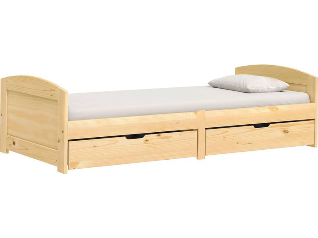 materiál masiv borovice, lakované provedení 2 zásuvky pojízdné na kolečkách jsou v ceně cena včetně roštu (dřevěný laťkový) bez matrace doporučený rozměr matrace 90 × 200 cm