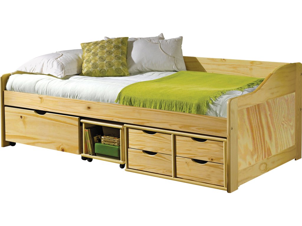 materiál masiv borovice, lakované provedení praktické úložné prostory pod postelí (zásuvky a otevřená police) v ceně výška sedu 50 cm, cena včetně roštu (dřevěný laťkový), matrace není v ceně doporučený rozměr matrace 90 × 200 cm (M2, M5, M9, M12, M24, M26) jako vhodný doplněk doporučujeme čalouněný válec M10 hloubka široké zásuvky 65,5 cm, hloubka malých zásuvek 39 cm, hloubka otevřené police 44,5 cm