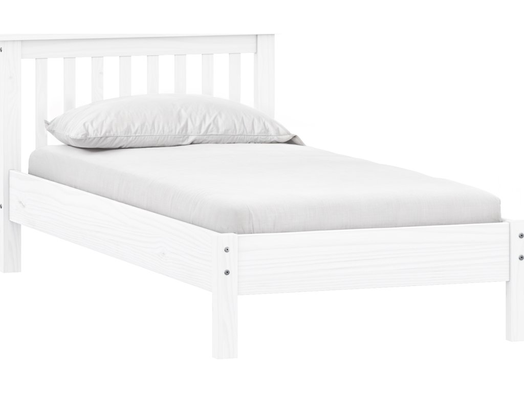 materiál masiv borovice, barevné provedení bílý lak výška čela 80 cm, výška sedu 38 cm, cena bez roštu a matrace minimální doporučená výška matrace 15 cm doporučený rozměr matrace 90 × 200 cm a rošt R1 doporučená nosnost do 120 kg