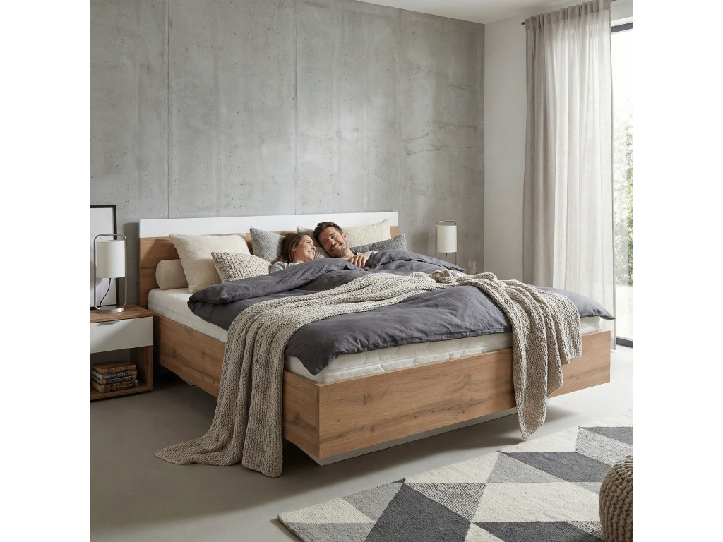 Manželská postel, 180x200, dub wotan / bílá, GABRIELA