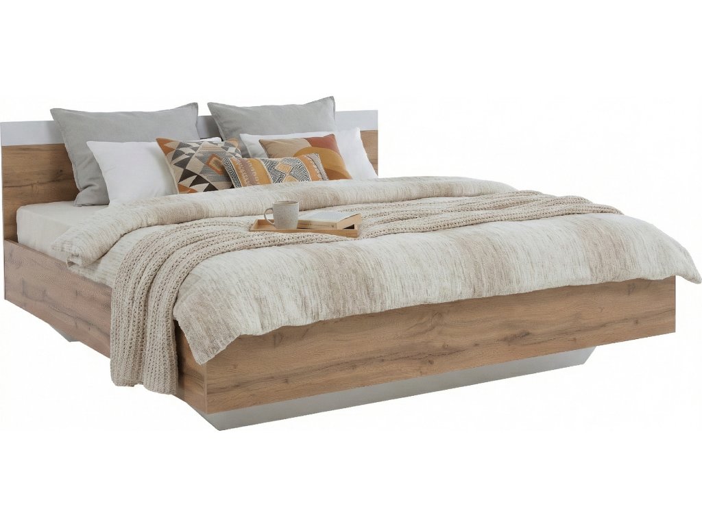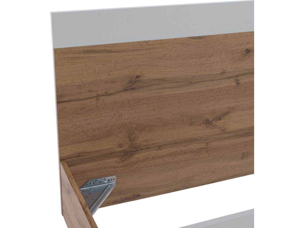 Postel, 160x200, GABRIELA Materiál: DTD laminovaná Barva: dub wotan / bílá Rozměry (ŠxHxV): 183,6x203,2x90 cm Tloušťka materiálu: 16/22 mm Nosnost: 110 kg Postel dodávána bez roštu a matrace. K posteli doporučujeme zakoupit rošt Monna a matraci o rozměru 180x200 cm z naší nabídky. Dodávané v demontu.