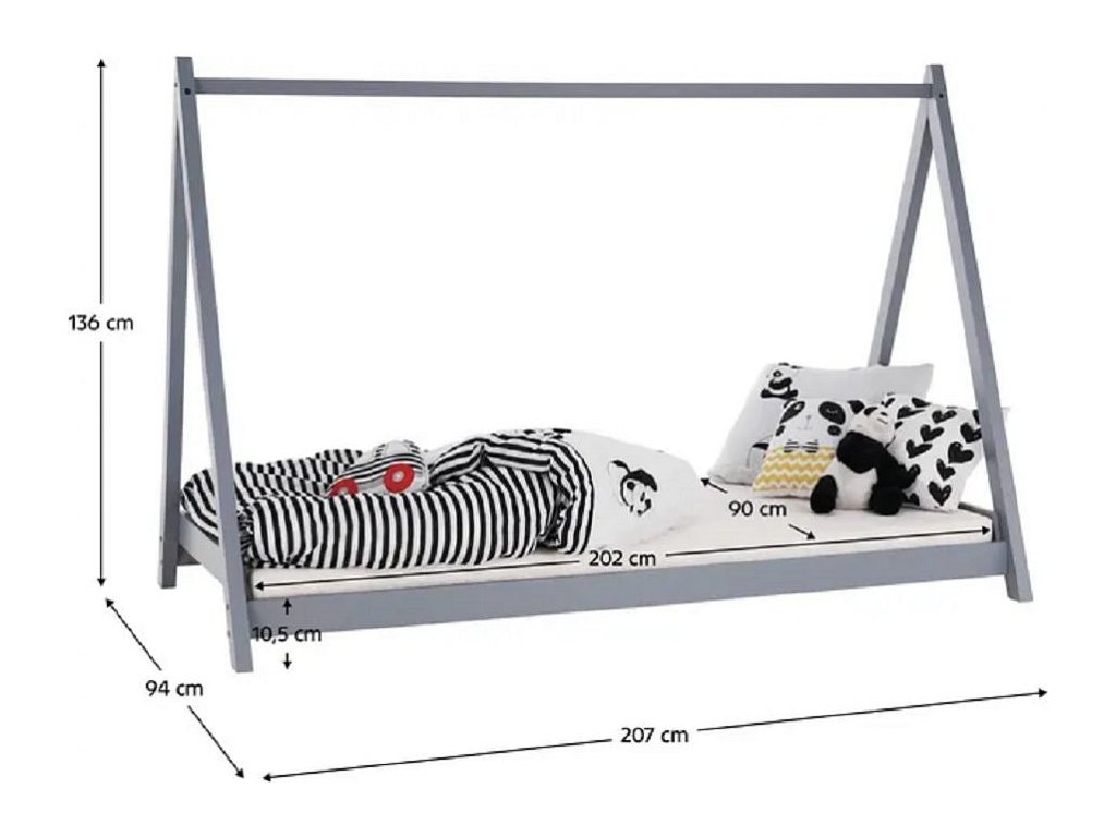 Montessori postel, šedá, borovicové dřevo, GROSI
