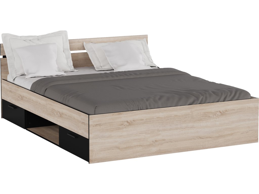 barevné provedení dub Sonoma / černá 2 úložné zásuvky s kovovými pojezdy, rozměr zásuvky (š/v/h) 56 × 11 × 33 cm rozměr niky (š/v/h) 80 × 20 × 36 cm, zásuvky a nika jsou v ceně matrace a rošt nejsou v ceně, doporučený rozměr matrace 160 × 200 cm nebo 2 kusy 80 × 200 cm k posteli je nutno použít samonosný rošt v rámu 160 × 200 cm (7155 nebo 7866 nebo 429596) doporučená maximální nosnost 2 × 100 kg