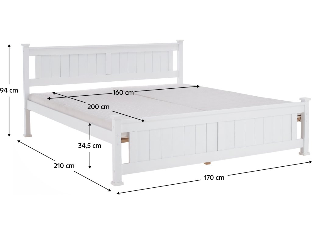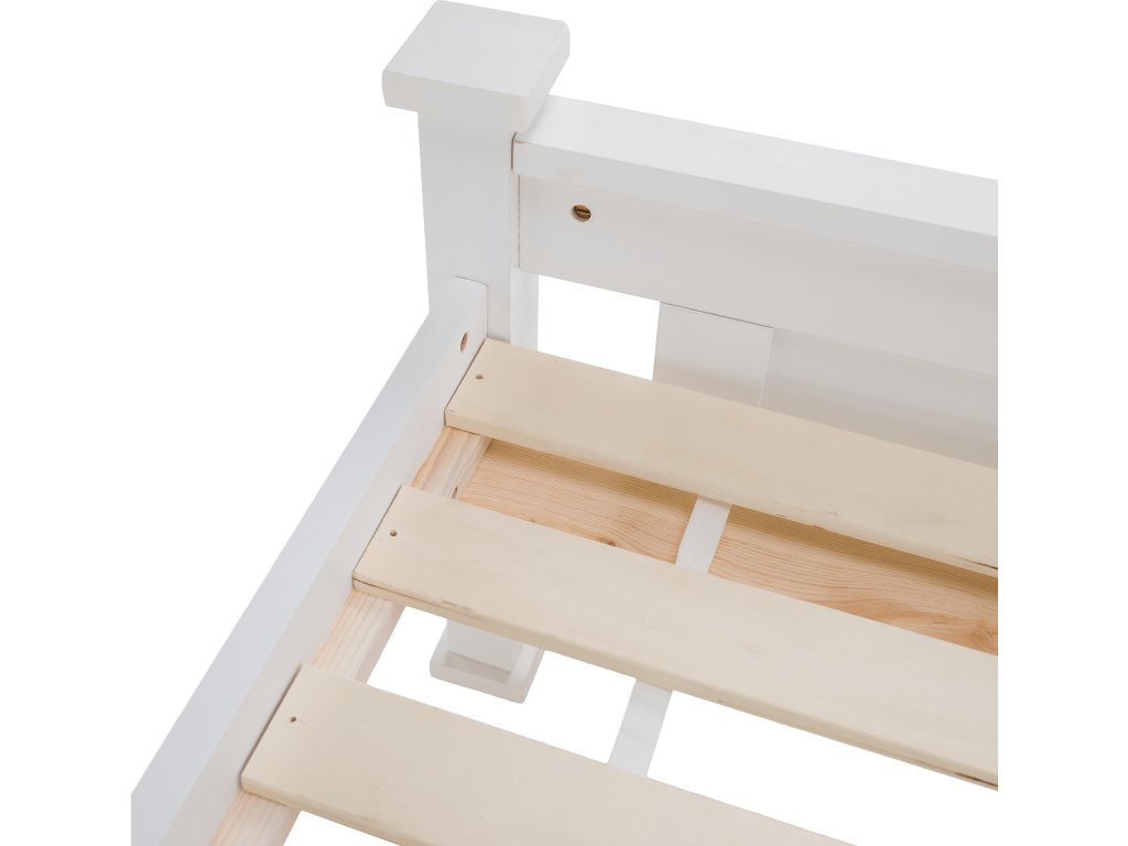 Postel s zarolovaným roštem LUCAS NEW. Materiál: borovicové dřevo / MDF / překližka Barva: bílá Rozměry (ŠxHxV): 170x210x94 cm Plocha na spaní: 160x200 cm Výška po rošt: 34,5 cm. Nosnost na lůžko: 100 kg Dodávané v demontu.