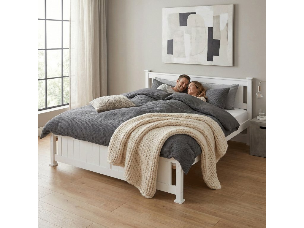 Postel, borovicové dřevo/bílá, 160x200, LUCAS NEW