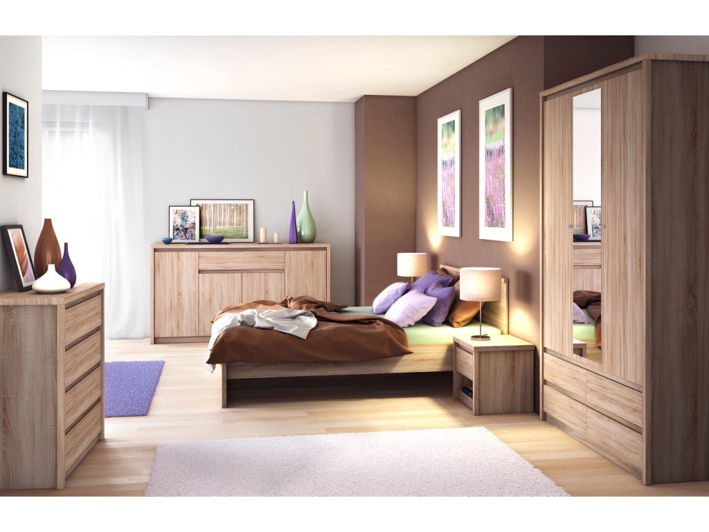 Postel 160 NORTY TYP 8 Materiál: DTD laminovaná Provedení: dub sonoma Rozměry (ŠxHxV): 165,5x205x85 cm Plocha na spaní (ŠxH): 160x200 cm Tloušťka materiálu korpus: 22 mm Tloušťka materiálu čelo: 32 mm Nosnost: 110 kg Možnost dokoupení ostatních částí sestavy Postel je dodávána bez roštu a matrace, možnost dokoupit z naší nabídky Dodávané v demontu