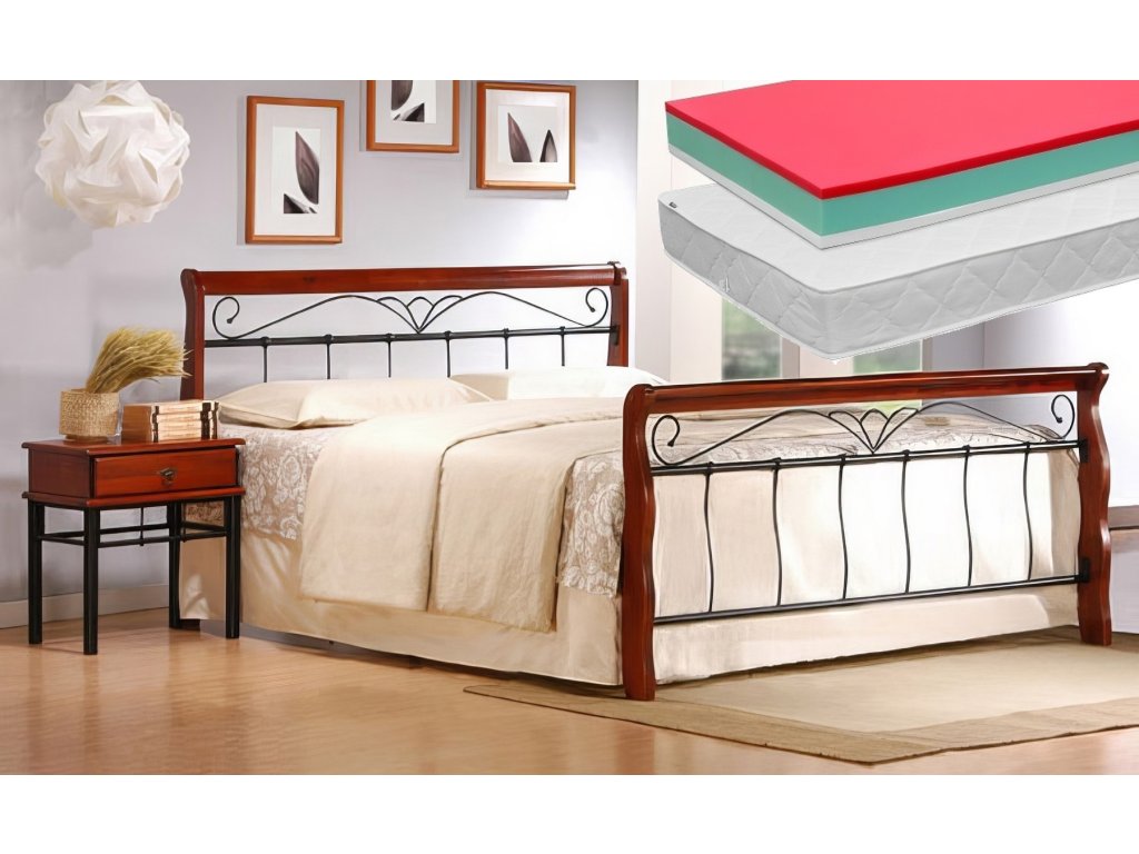 Cenově výhodná nabídka! Jedná se o 2 ks matrace LITERA 90 a k tomu postel BENÁTKY. Popis matrace - klasická sendvičová matrace z odolných a vzdušných pěn Flexifoam®. Ortopedická matrace s pevným potahem s lemovkou s označením tužší a měkčí strany. Strana HARD (tužší, červená, tuhost 3,5/5); Strana SOFT (měkčí, bílá, tuhost 3/5). Robustní středová část je vyrobena z prodyšné pěny – odolná, stabilní pěna Flexifoam®. Matrace má pevný nesnímatelný potah s lemovkou, který lze čistit tradičními metodami (viz všivka). Potah je prošitý klimatizační vrstvou dutého vlákna po obou stranách zajišťující pohodlí, vzdušnost a izolaci. Doporučená nosnost do 120 kg. Matrace je vhodná na všechny typy lamelových roštů, lze ji uložit i na laťkový rošt. Matrace jsou 2 kusy o rozměru 90 x 200 cm. Popis postele - elegantní postel v klasickém stylu. Zajímavá kombinace kovu a dřeva. Kvalitní masivního dřevo je v barevném provedení antická třešeň. Rám je kovový, tak jako i originální mříže v černé barvě na předním i zadním čele. Podélné dřevěné lamely u roštu jsou vsazené do kovového rámu postele, pod roštem jsou 3 podpěrné nožičky pro zvýšení nosnosti ( 180 kg ). Zátěž postele je cca 100 kg na každé straně postele. Výška roštu od země cca 34 cm. Dodáváme demontovaném stavu.Doplňkové parametry
