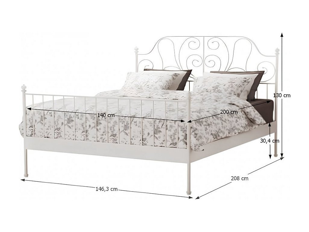 Kovová postel s lamelovým roštem BEHEMOTH Vnější rozměry: (ŠxHxV): 146,3x208x130 cm. Plocha na spaní: 140x200 cm. Nosnost: 100 kg Materiál: kov - bílá barva. Výška rámu: 30,4 cm. Možnost dokoupení matrace z naší nabídky.