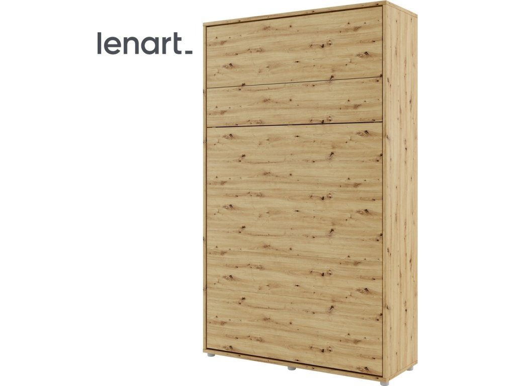 Vysoká výklopná postel 120 dub artisan. Rozměry viz obrázek. Se sklápěcí postelí Vás už nebude trápit malý prostor Vaší domácnosti. Díky stabilní konstrukci zaručuje pohodlný odpočinek. Pneumatický mechanismus sklápění postele zajistí bezpečné otevírání a je doplněn SOFT CLOSE systémem tichého zavírání. Tento výjimečný systém Vám umožní manipulaci pouze jedním prstem. Když je postel sklopená, vypadá jako běžná skříň. Vyklopením se vytáhne celá délka postele. Při lozložení postele má hloubku 228 cm. Uvnitř skříně jsou praktické police na knížky nebo dekorační předměty, vše máte na dosah ruky. Maximální zatížení polic je 5 kg. Rám je nutno přišroubovat ke zdi, nosnost postele je 150 kg. Rošt postele je v ceně, matrace není součástí, je potřeba ji dokoupit. Doporučujeme velikost 120 x 200 x výšku do 18 cm. Po sklopení postele vzniká prostor pod postelí o výšce 24,9 cm. Nábytek je vyroben z kvalitního lamina s ABS hranou. Lamino je odolné proti poškrábání, poškození, vlhkosti a vysokým teplotám. Postel nabízíme v několika velikostech a barevných provedeních. K posteli je možné dokoupit LED osvětlení. Dodáváme v demontovaném stavu. Můžete si prohlédnout prezentační video, klikněte ZDE.Doplňkové parametry