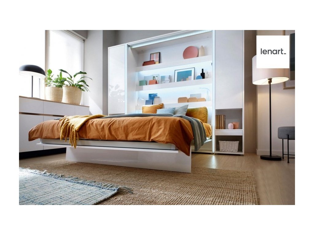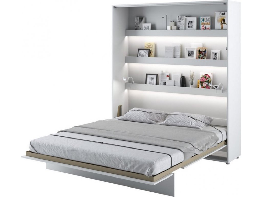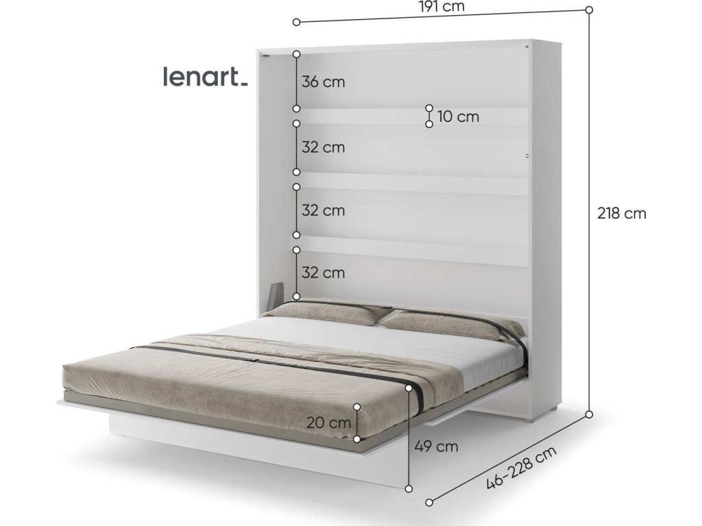 Vysoká výklopná postel 180 bílá mat. Rozměry viz obrázek. Se sklápěcí postelí Vás už nebude trápit malý prostor Vaší domácnosti. Díky stabilní konstrukci zaručuje pohodlný odpočinek. Pneumatický mechanismus sklápění postele zajistí bezpečné otevírání a je doplněn SOFT CLOSE systémem tichého zavírání. Tento výjimečný systém Vám umožní manipulaci pouze jedním prstem. Když je postel sklopená, vypadá jako běžná skříň. Vyklopením se vytáhne celá délka postele. Při lozložení postele má hloubku 228 cm. Uvnitř skříně jsou praktické police na knížky nebo dekorační předměty, vše máte na dosah ruky. Maximální zatížení polic je 5 kg. Rám je nutno přišroubovat ke zdi, nosnost postele je 200 kg. Rošt postele je v ceně, matrace není součástí, je potřeba ji dokoupit. Doporučujeme velikost 180 x 200 x výšku do 18 cm. Po sklopení postele vzniká prostor pod postelí o výšce 24,9 cm. Nábytek je vyroben z kvalitního lamina s ABS hranou. Lamino je odolné proti poškrábání, poškození, vlhkosti a vysokým teplotám. Postel nabízíme v několika velikostech a barevných provedeních. K posteli je možné dokoupit LED osvětlení. Dodáváme v demontovaném stavu. Můžete si prohlédnout prezentační video, klikněte ZDE.Doplňkové parametry