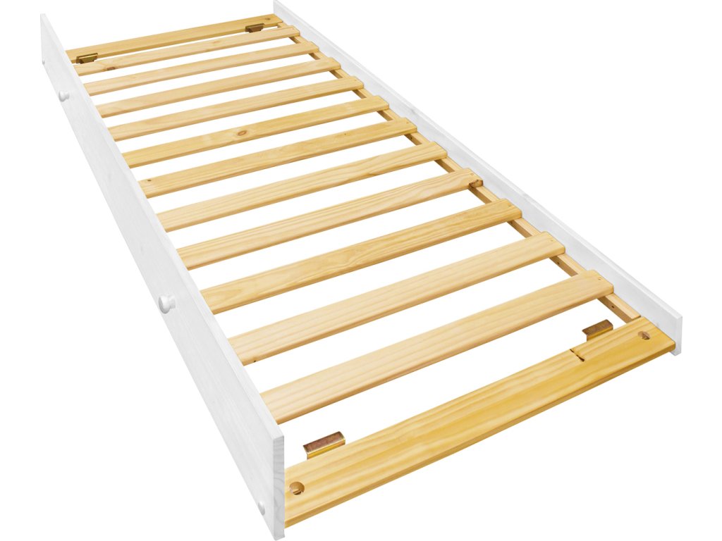 materiál masiv borovice, barevné provedení bílý lak výsuvná na kolečkách, cena bez matrace maximální doporučená výška matrace 14 cm doporučený rozměr matrace 90 × 200 cm vhodná jako výsuvná přistýlka k pohovce TORINO 8085B