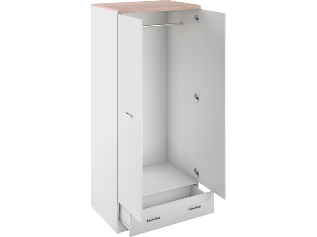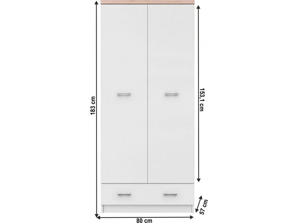 Skříň 2D1S TOPTY Typ 01 Materiál: DTD laminovaná Provedení: bílá / dub sonoma Rozměry (ŠxHxV): 80x57x183 cm Tloušťka materiálu korpus: 16 mm Tloušťka materiálu vrchní desky: 32 mm dvoudveřová věšáková Moderní sektorový systém vhodný na zařízení kanceláří, pracoven, obývacích prostorů či síní