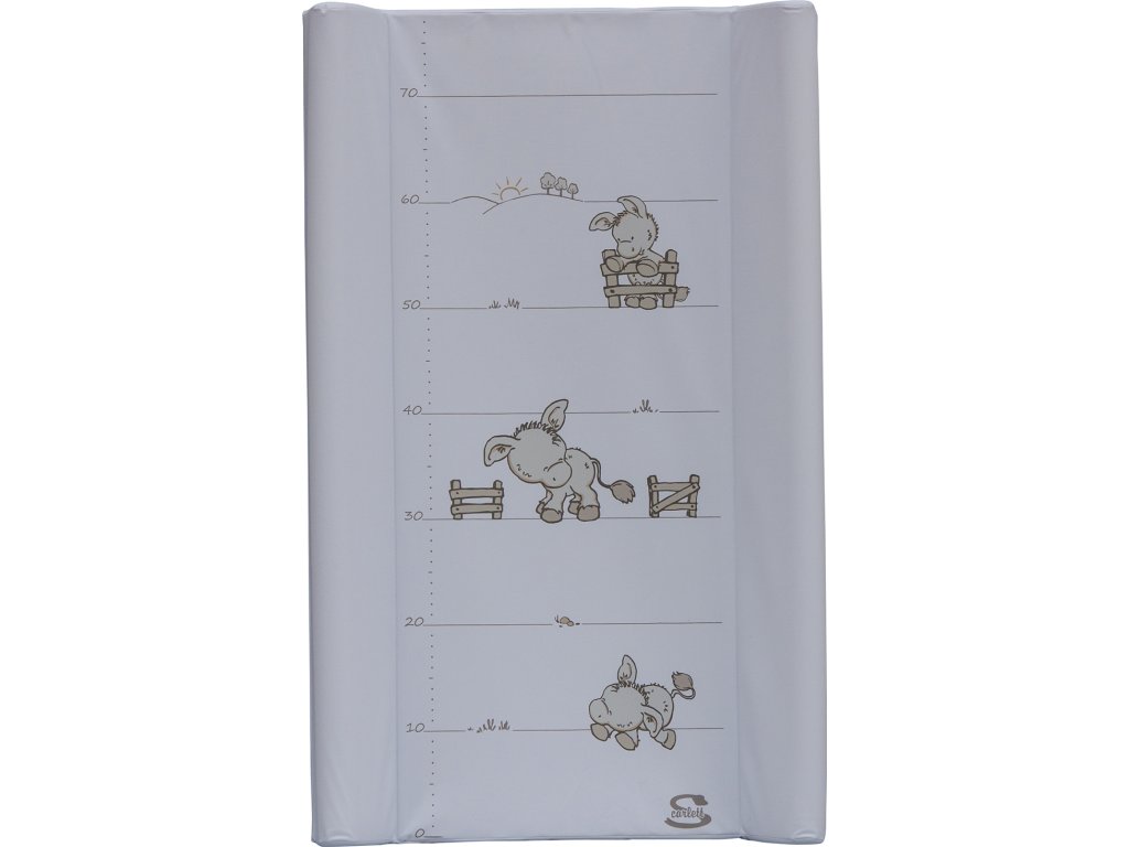 Přebalovací podložka s kapsou na spodní straně a profilovanými okraji z kvalitním PVC potahem bez ftalátů, vyplněná molitanem. Tato podložka je určena na komody s výklopnou deskou. Motivy přebalovacích podložek se často obměňují.