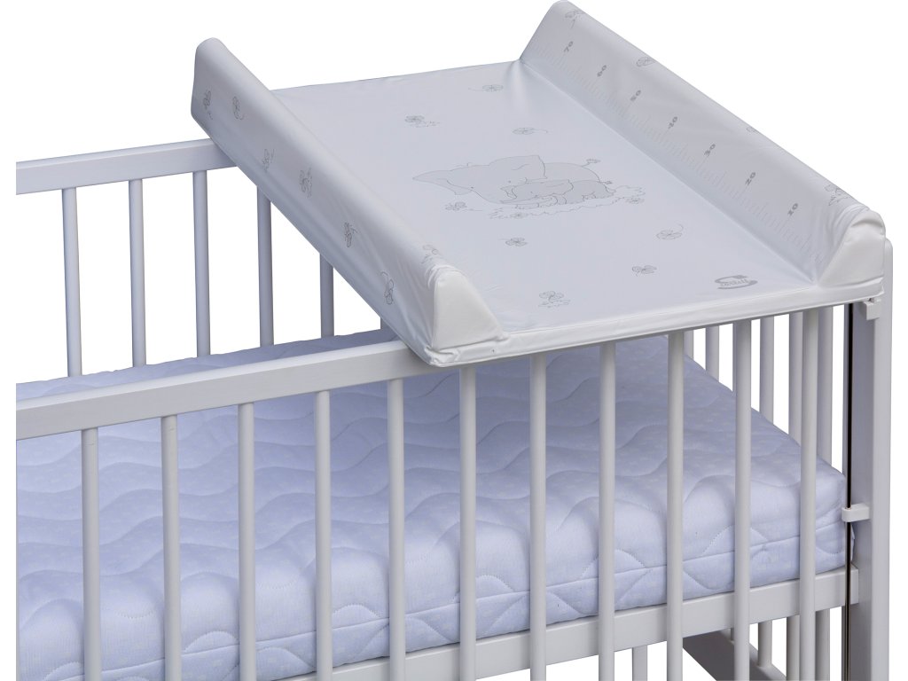Přebalovací podložka s pevnou vložkou z MDF a profilovanými okraji s kvalitním PVC potahem bez ftalátů, vyplněná molitanem.