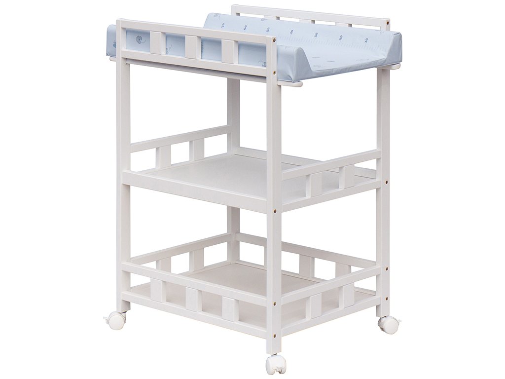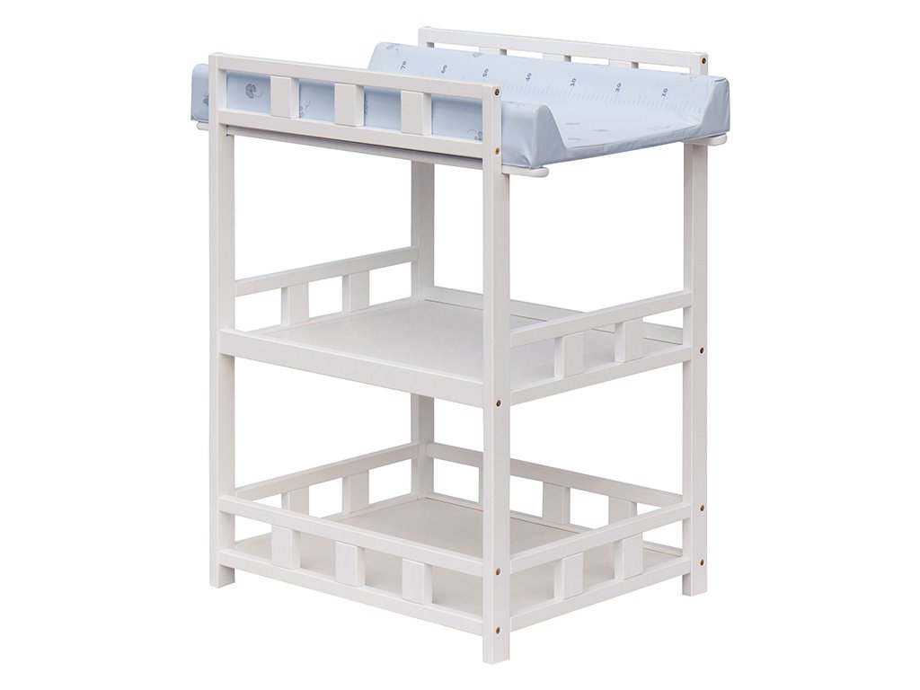 Praktický přebalovací pult se dvěmi policemi z HDF desky. Vrchní přebalovací pult z polyuretanu potažený omyvatelným PVC, vyztužený MDF deskou.