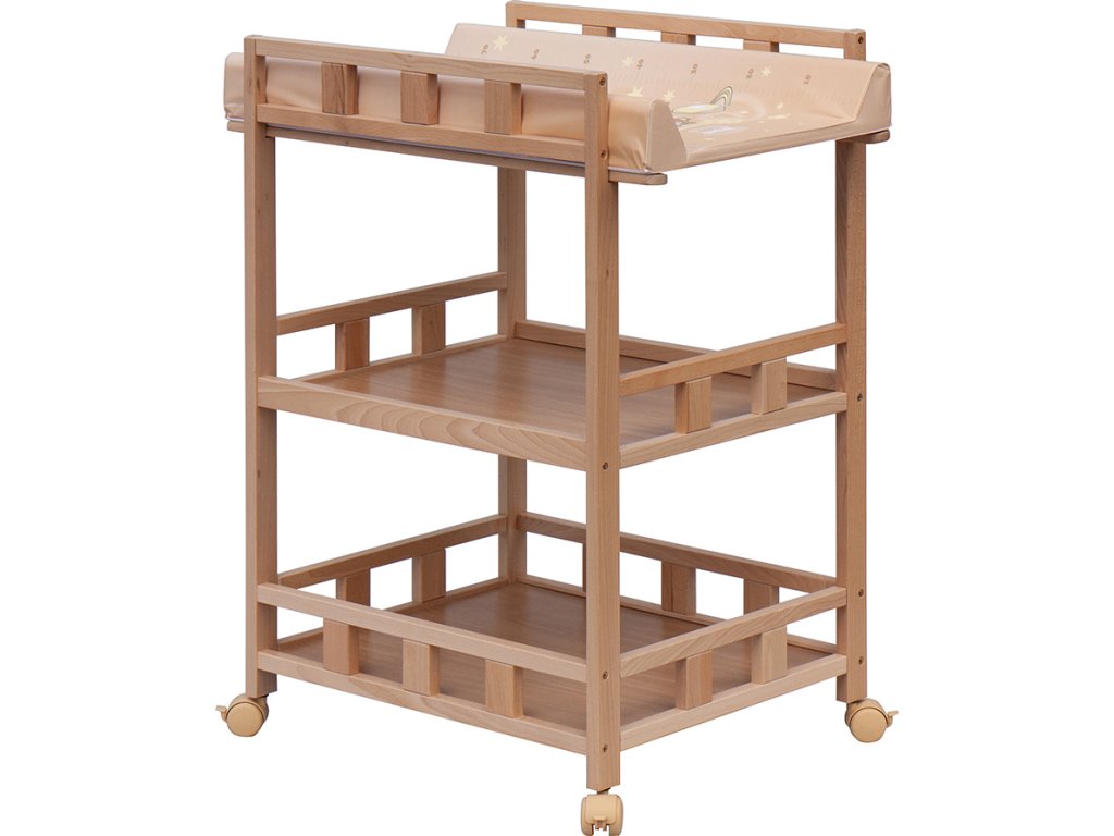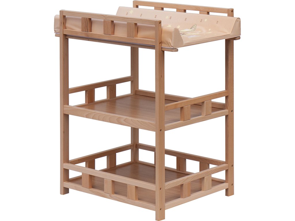 Praktický přebalovací pult se dvěmi policemi z HDF desky. Vrchní přebalovací pult z polyuretanu potažený omyvatelným PVC, vyztužený MDF deskou.