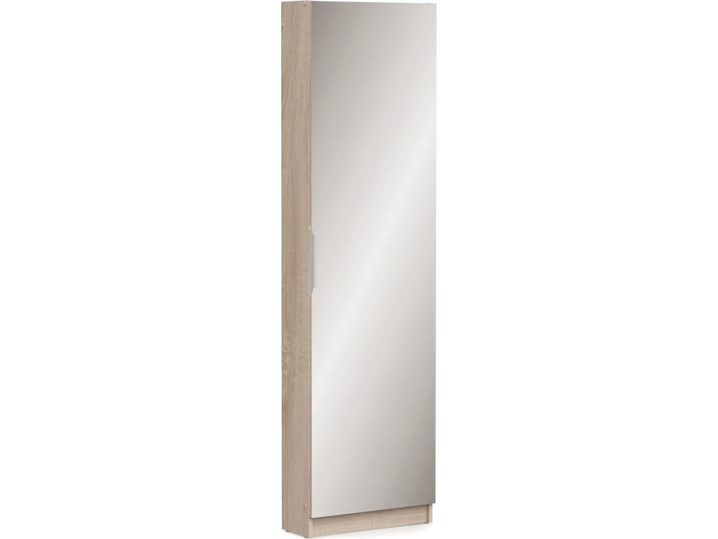 barevné provedení dub Sonoma na dveřích zrcadlo 50 × 173 cm, kovová úchytka montáž možná na levou i pravou stranu 6 úrovní pro 12 párů bot