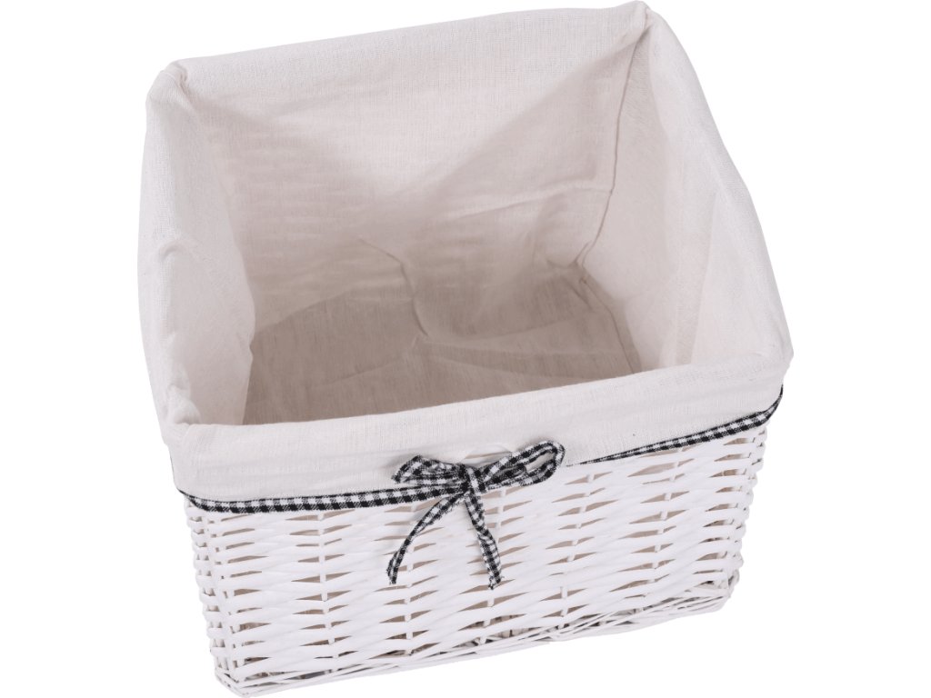 Lavice s proutěným košíkem a polštářem na vrchu, starobílá, RUBY1