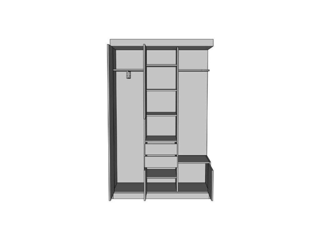 nabízí dostatek úložného prostoru díky 2 prostorným zásuvkám, četným policím a šatní skříni, která umožňuje přehledné uspořádání oblečení, kabátů či doplňků.