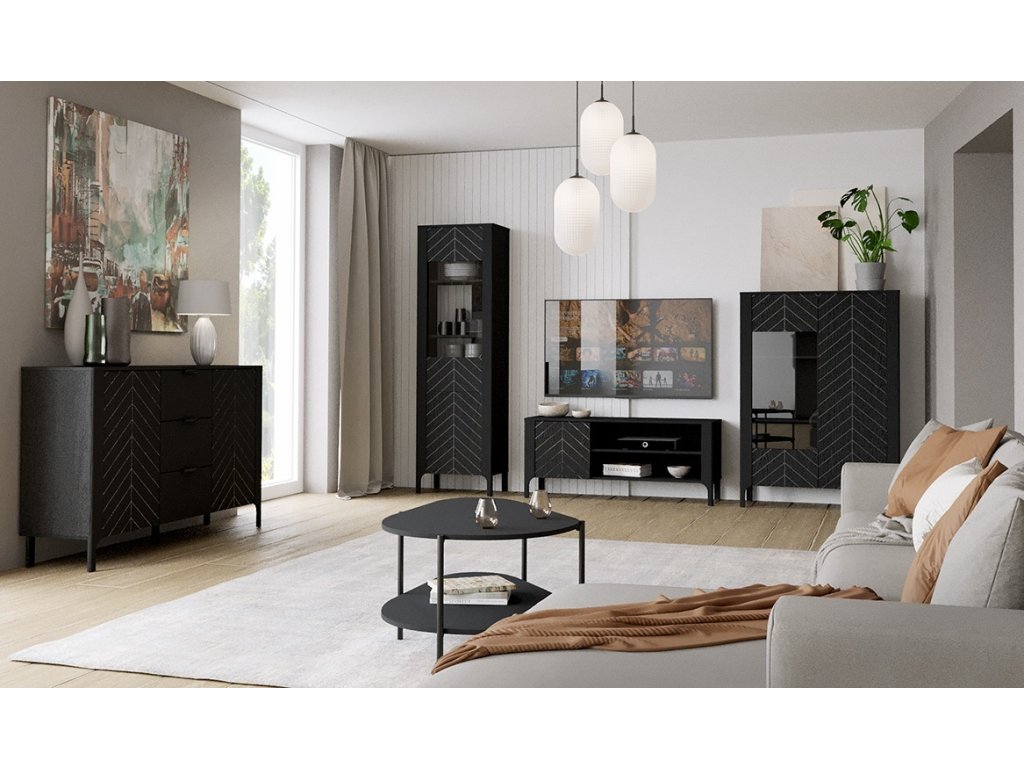 Zaujme výrazným vzorem rybí kosti na čelních plochách, vytvořeným pomocí UV technologie. Ten dodává celému kusu charakter a styl, aniž by rušil celkovou čistotu tvaru. Kovové minimalistické úchyty podtrhují její moderní vzhled.