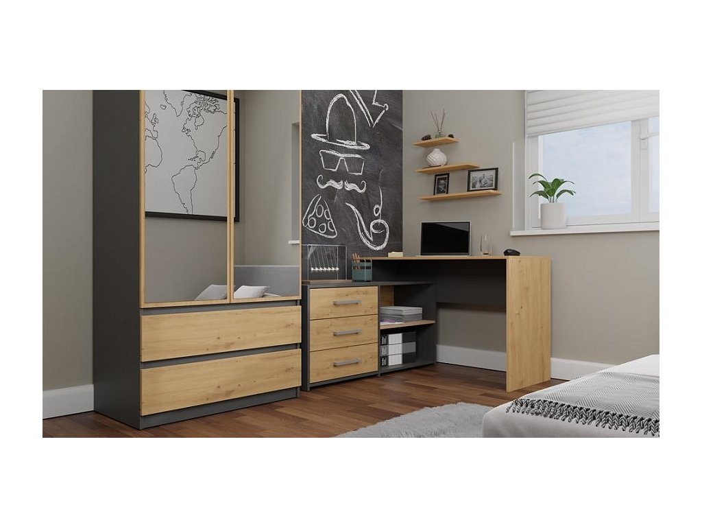 Funkční psací stůl Dado v jednoduchém a moderním designu poskytuje pohodlnou pracovní plochu a díky vestavěné komodě také spoustu úložného prostoru. Je vyrobený ze snadno udržovatelného lamina, hrany jsou zakončené vysoce odolným ABS materiálem.