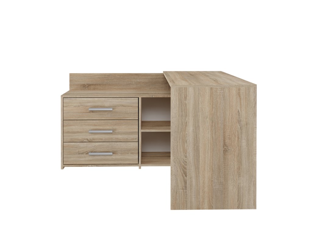 Funkční psací stůl Dado v jednoduchém a moderním designu poskytuje pohodlnou pracovní plochu a díky vestavěné komodě také spoustu úložného prostoru. Je vyrobený ze snadno udržovatelného lamina, hrany jsou zakončené vysoce odolným ABS materiálem.