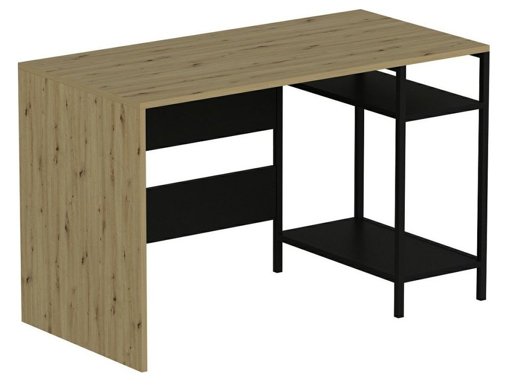 Psací stůl kombinuje moderní design s funkčností a je ideálním řešením pro dětský pokoj nebo pracovnu. Díky odkládacím policím a integrovanému kontejneru na PC poskytuje dostatek prostoru pro efektivní práci i studium. Jeho barevná kombinace dub Artisan a černá dodává interiéru elegantní vzhled.
