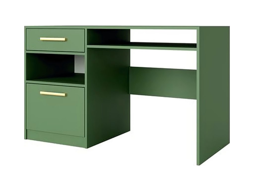 Pracovní stůl v moderním provedení. Stůl je vyroben z kvalitního LTD v barvě pastelově zelené. V levé části je praktická zásuvka a pod ní jednodveřová skříňka. Dodáváme v demontovaném stavu.Doplňkové parametry