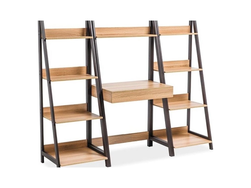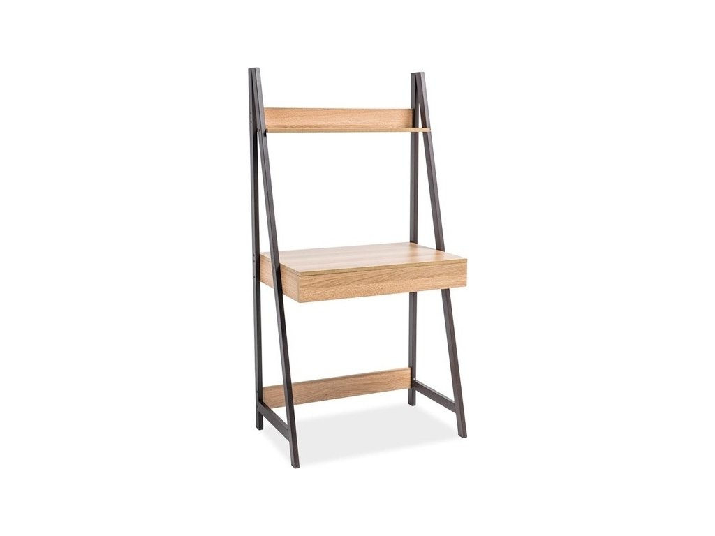 Jednoduchý, ale praktický pracovní stůl se zásuvkou. Zajímavá konstrukce nožek stolu má nahoře poličku. Konstrukce je kovová tmavě hnědé barvy, deska z kvalitního MDF v barvě dub. Vhodný i pro menší pokoje. Možno kombinovat s Matis A.Doplňkové parametry