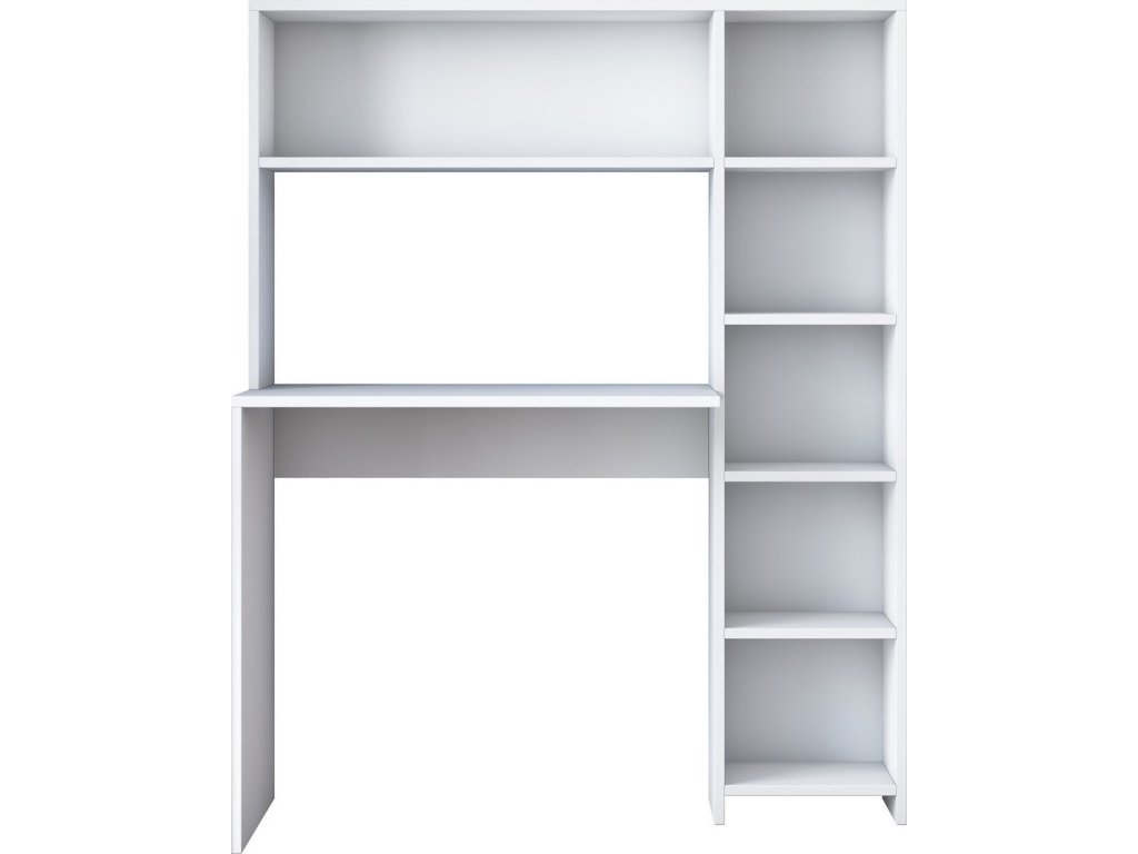 Moderní pracovní stůl navržený pro efektivní práci i studium. Tento elegantní stůl je ideální pro dětský pokoj nebo kancelář či pracovnu, kde oceníte jeho funkčnost a čistý skandinávský styl. Materiál je Melamin, VT laminát (18 mm). Barevné provedení je matná bílá. Stůl nabízí dostatek pracovního prostoru, zatímco 5 polic poskytuje praktické úložné místo. Kvalitní melaminový povrch zajišťuje snadnou údržbu a dlouhou životnost. Dodáváme v demontovaném stavu.