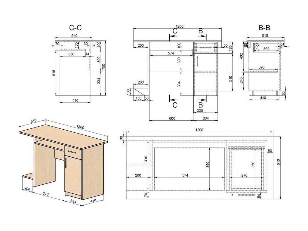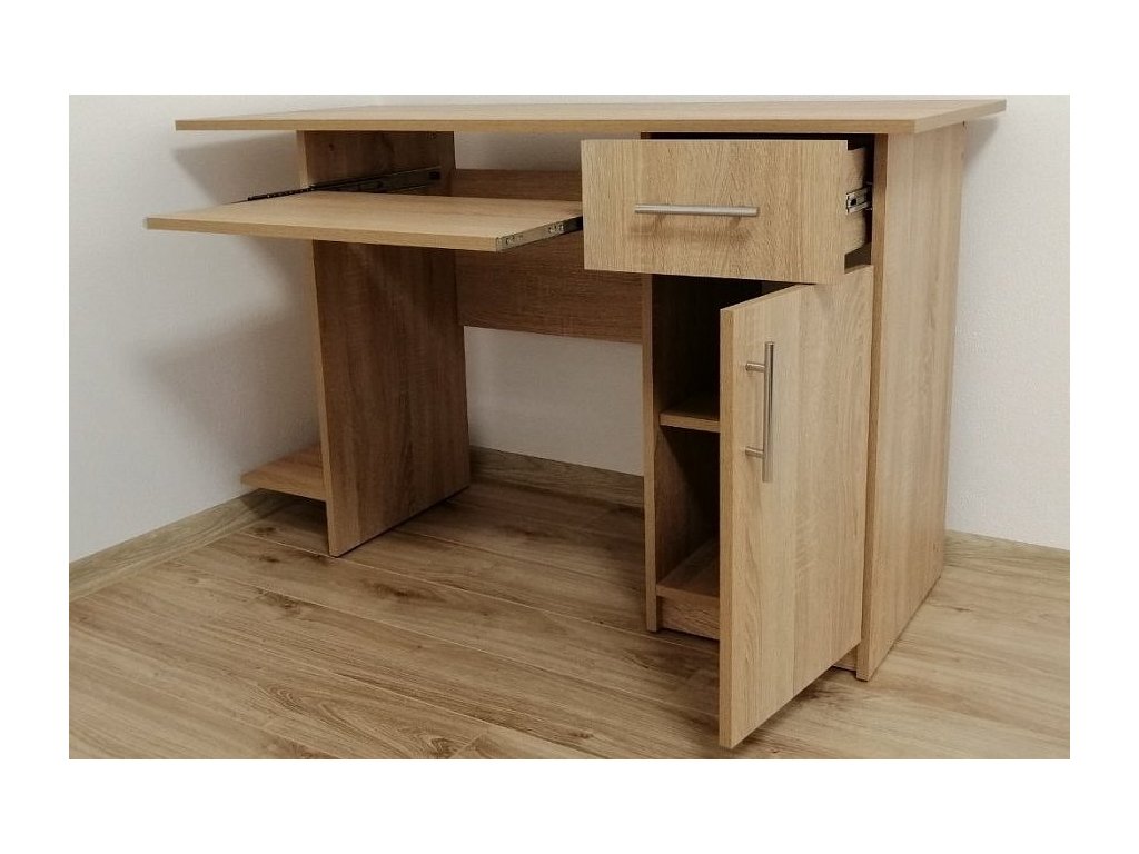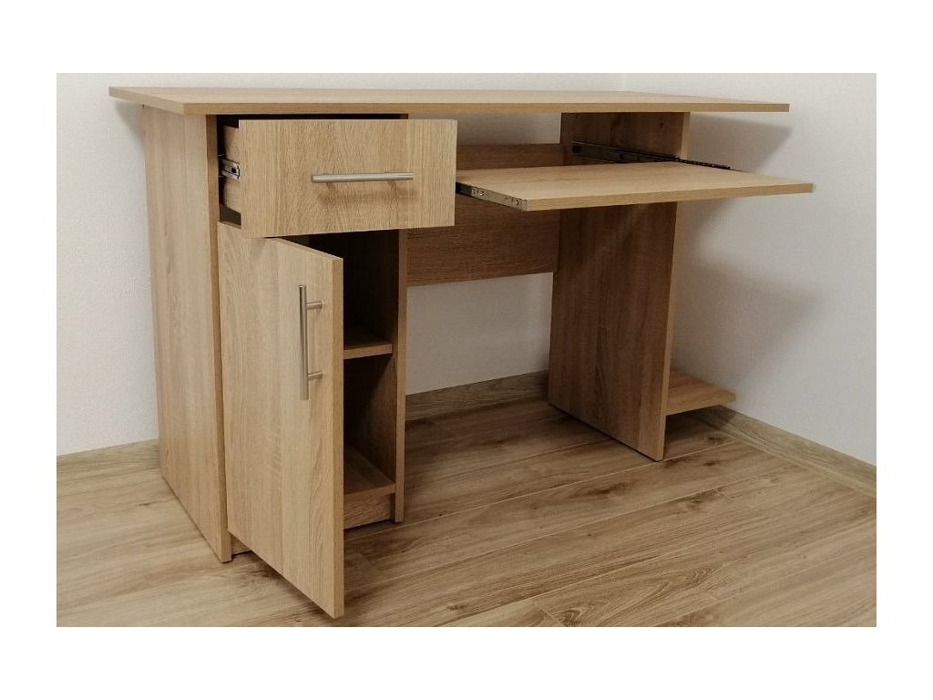 Pracovní stůl se zásuvkou a dvířky napravo je proveden v jednoduché praktické linii, který se hodí do moderního interiéru. Korpus je vyroben z LTD desky odolné vůči poškrábání v barvě dub sonoma. Dodáváme v demontovaném stavu.Doplňkové parametry