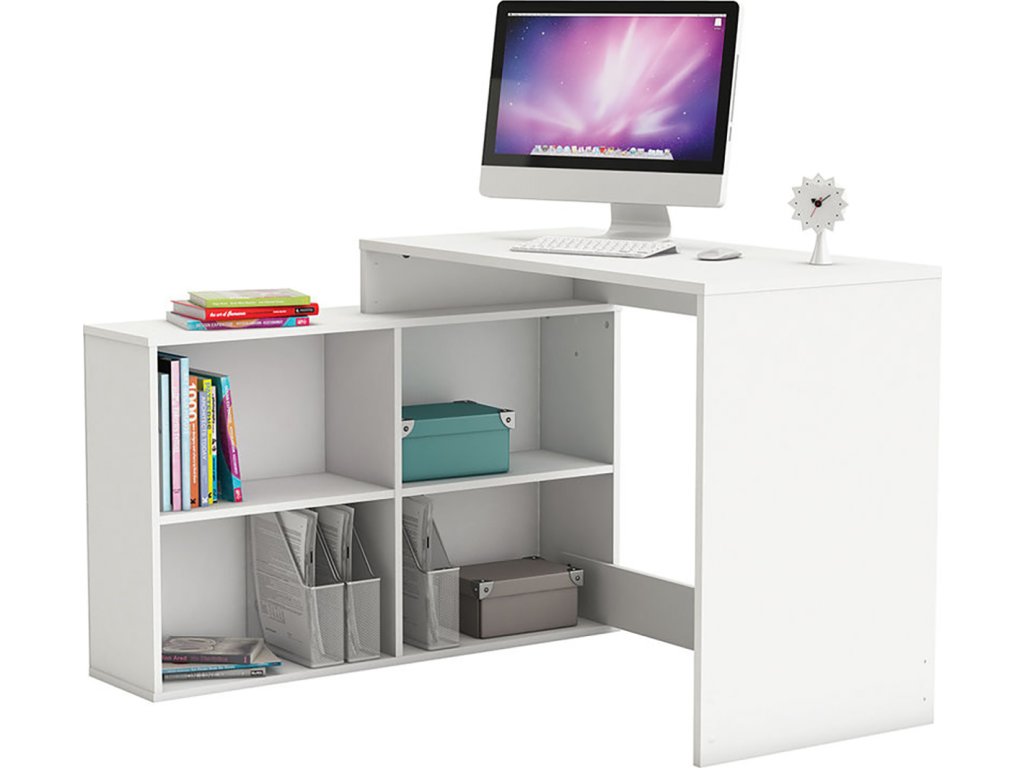 Rohový psací stůl CORNER bílý