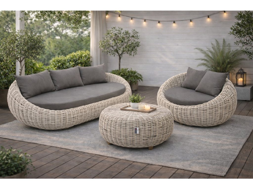 Zahradní ratanová sestava CHARLOTTE z přírodního broušeného ratanu CUBU .