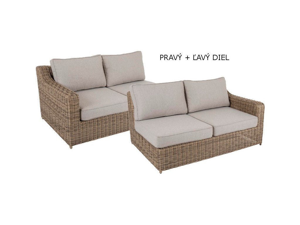 Luxusná rohová sedacia súprava vyrobená z kvalitného umelého ratanu v guľatom výplete. Sedenie má prírodný vzhľad v hnedej rustik farbe doplnené o šedo béžové textilné polstrovanie. Kombinovateľná je z akým koľvek stolíkom v ponuke. Súprava je vhodná do exteriéru, interiéru alebo do zimnej záhrady. Zloženie:Súprava obsahuje: ukončovacie diely pravý+ľavý, 1x rohový dielMateriál: UV stabilný umelý ratan, 100% recyklovateľný, netoxický, odolný voči počasiuRozmery sedacej súpravy: 253 x 253 x 85cm Š/H/Vkreslo: 90 x 100 x 70 cm (D/Š/V)Hmotnosť súpravy: 95 kg