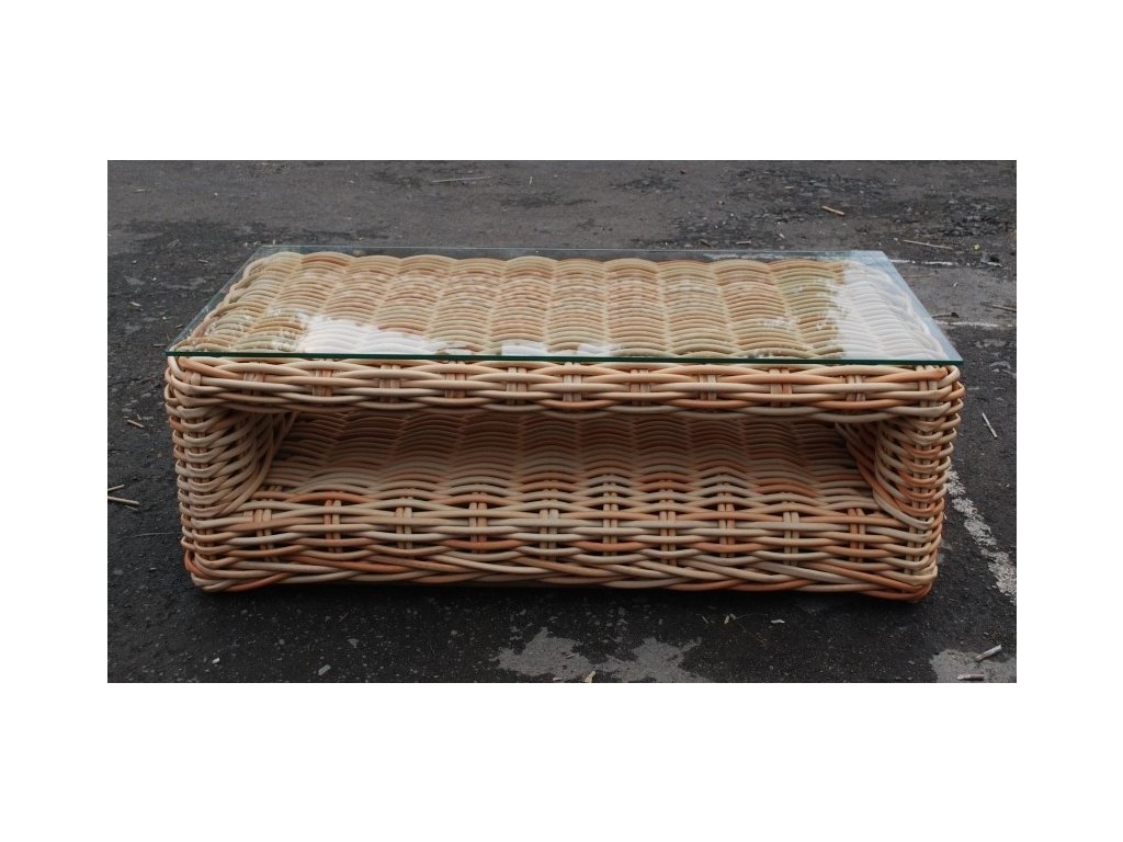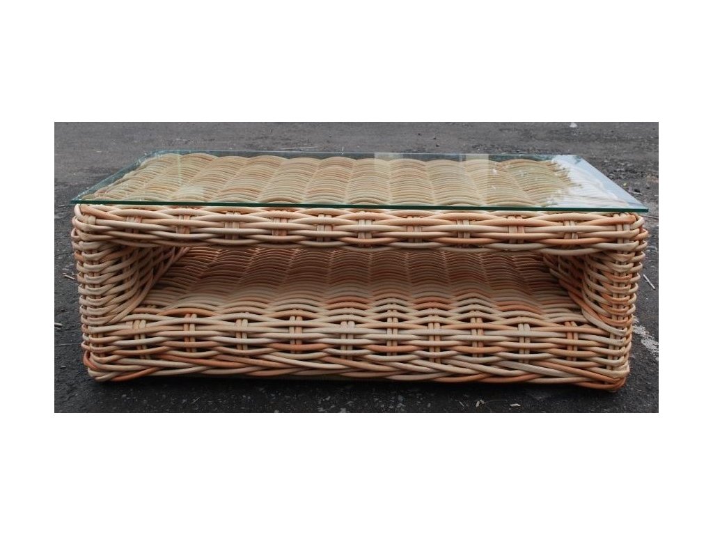 Stolek 140x70x50cm s pevnostním sklem ze syntetického ratanu.