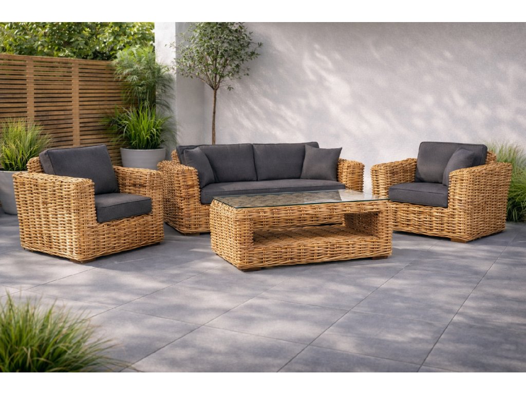 Luxusní ratanová sedací souprava TOSCA s výpletem z přírodního 15 mm silného ratanu mandola.